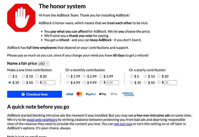 - Ease of installation: How easy was it to add the ad blocker to our browser? How easy was it to install any desktop or mobile apps?
