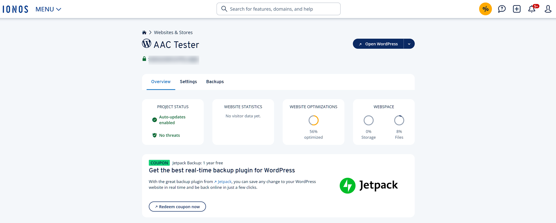 Although we had a positive testing experience with IONOS, it received in a lower score in the experience category due to the upsells on various pages of the dashboard. IONOS also lacks built-in content delivery network.