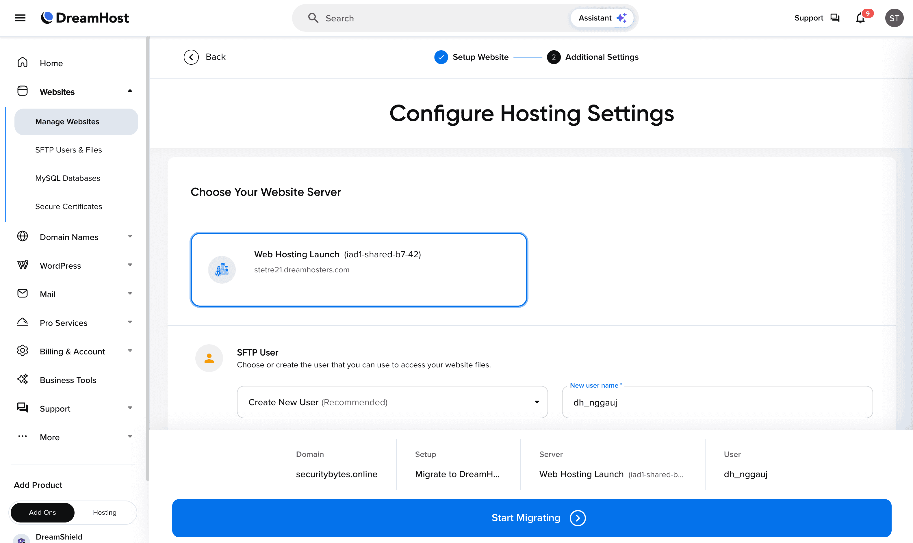 Higher website and storage limits on entry-level plan: Of all the Hostinger alternatives, DreamHost has the most generous website and storage limits at the entry level: 25 websites with 25 GB of NVMe storage.
