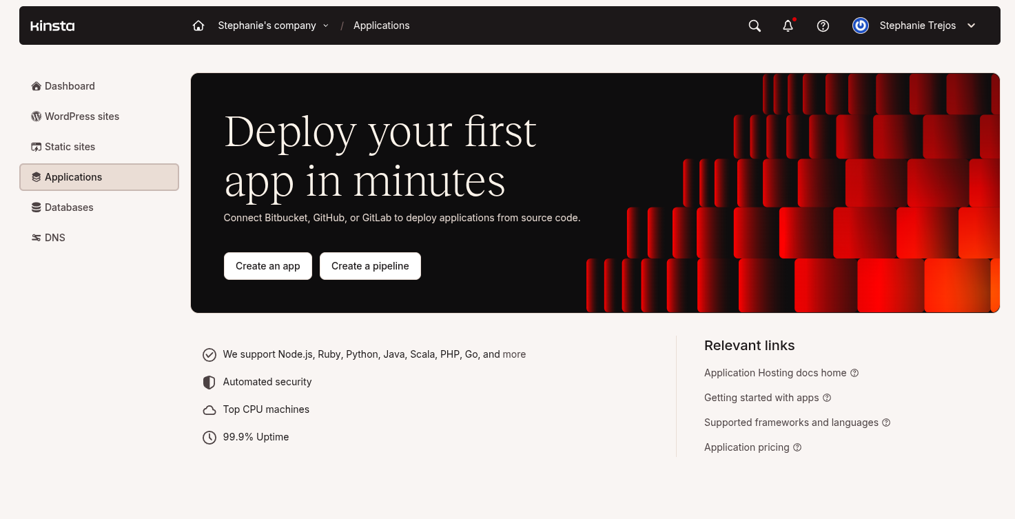 Developer-friendly setup: With Kinsta, you get SSH access, Git integration, WP-CLI, etc., built directly into the MyKinsta dashboard. Its interface retains its smooth and accessible design, even for complex developer workflows, making life easier for those designing or deploying complex web apps.