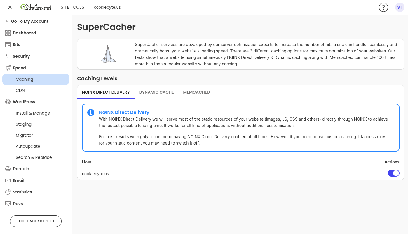 Optimized servers: Like Kinsta, SiteGround runs on Google Cloud infrastructure and offers several server-level optimizations specifically designed for WordPress websites. You also get multi-level server caching, 1-click CDN configuration, and its proprietary “Ultrafast PHP” technology, which claims to boost website speeds by 30% through code optimizations.