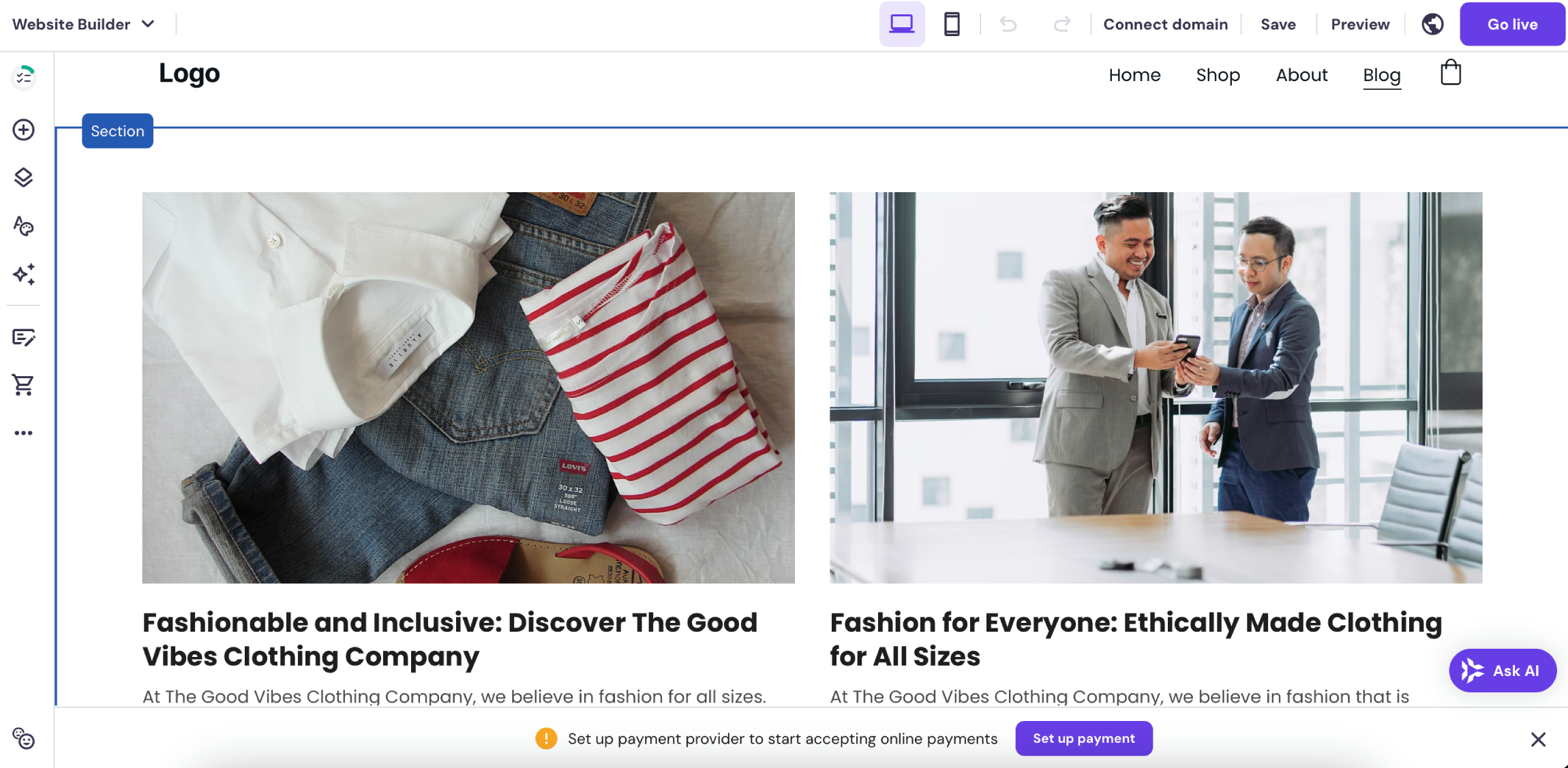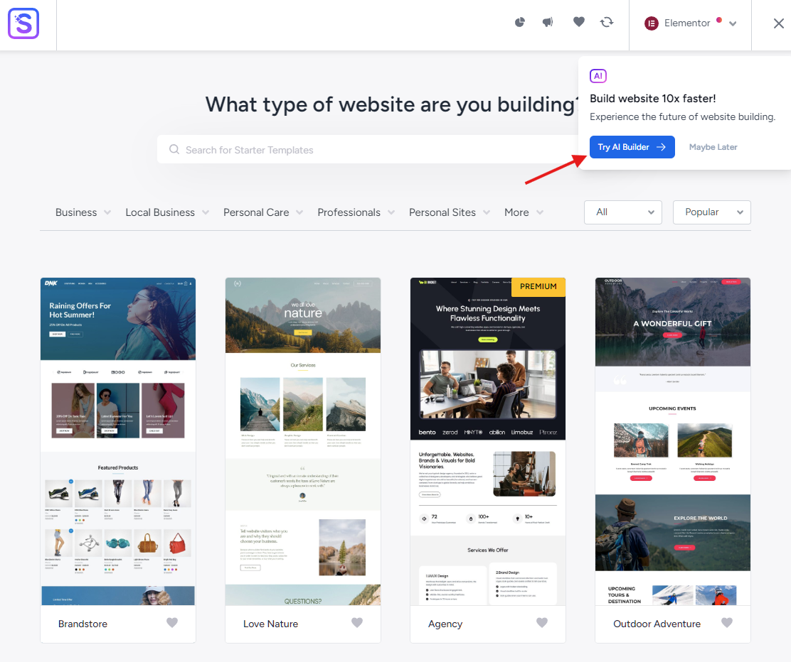No-code tools: With Hostinger’s plans, you also get access to an AI website builder for business and ecommerce sites, a WordPress-specific website builder with AI features, and the Horizons app, which can help you build and deploy web applications, with an AI chatbot interface. You also get a whole library of templates to set up complex VPS environments with Docker, Node.js, and n8n.