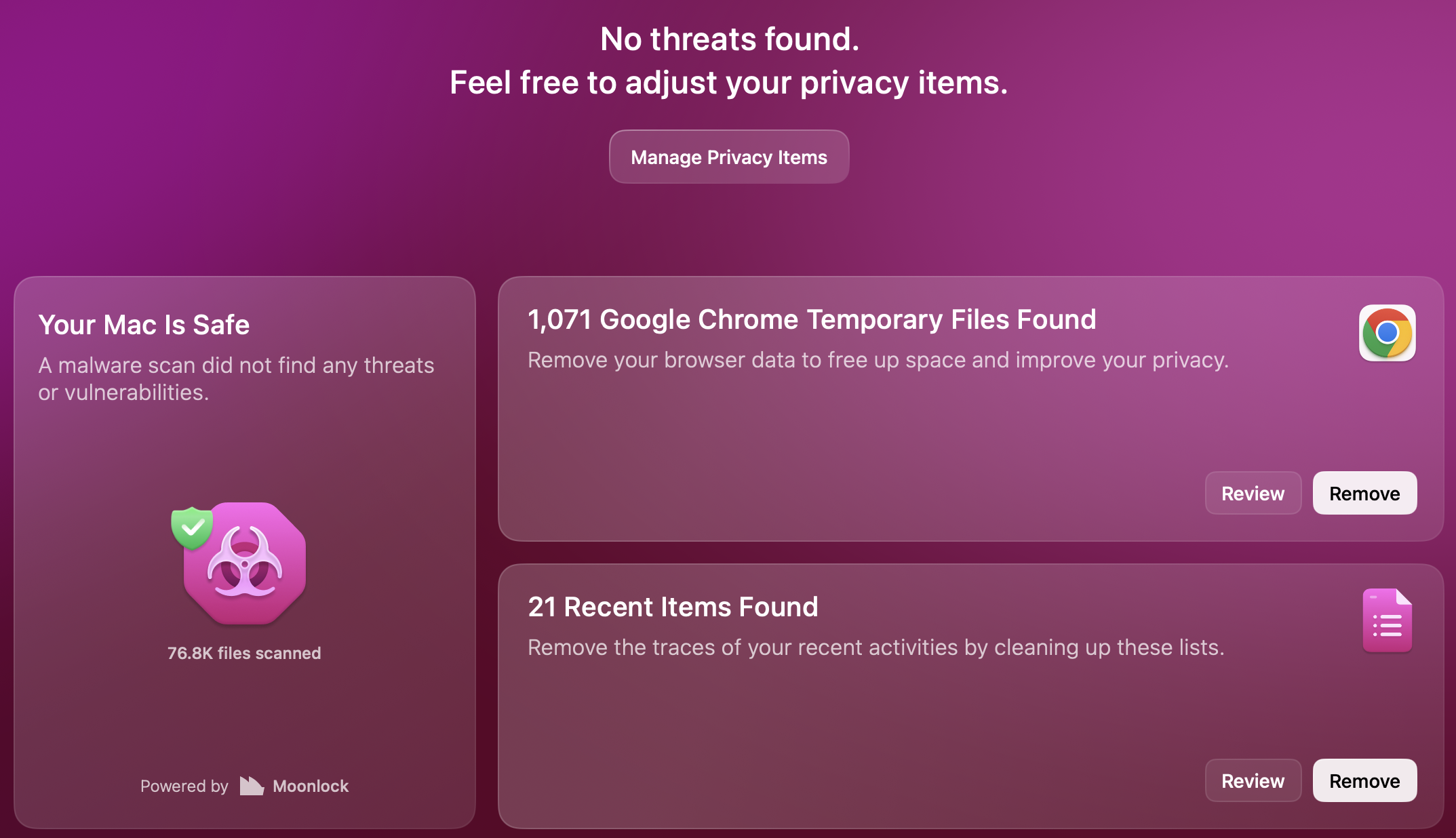 While CleanMyMac is missing a few standard features you’d normally find in an antivirus, like scheduled scanning and dark web monitoring, it packs a powerful punch for many Apple enthusiasts.