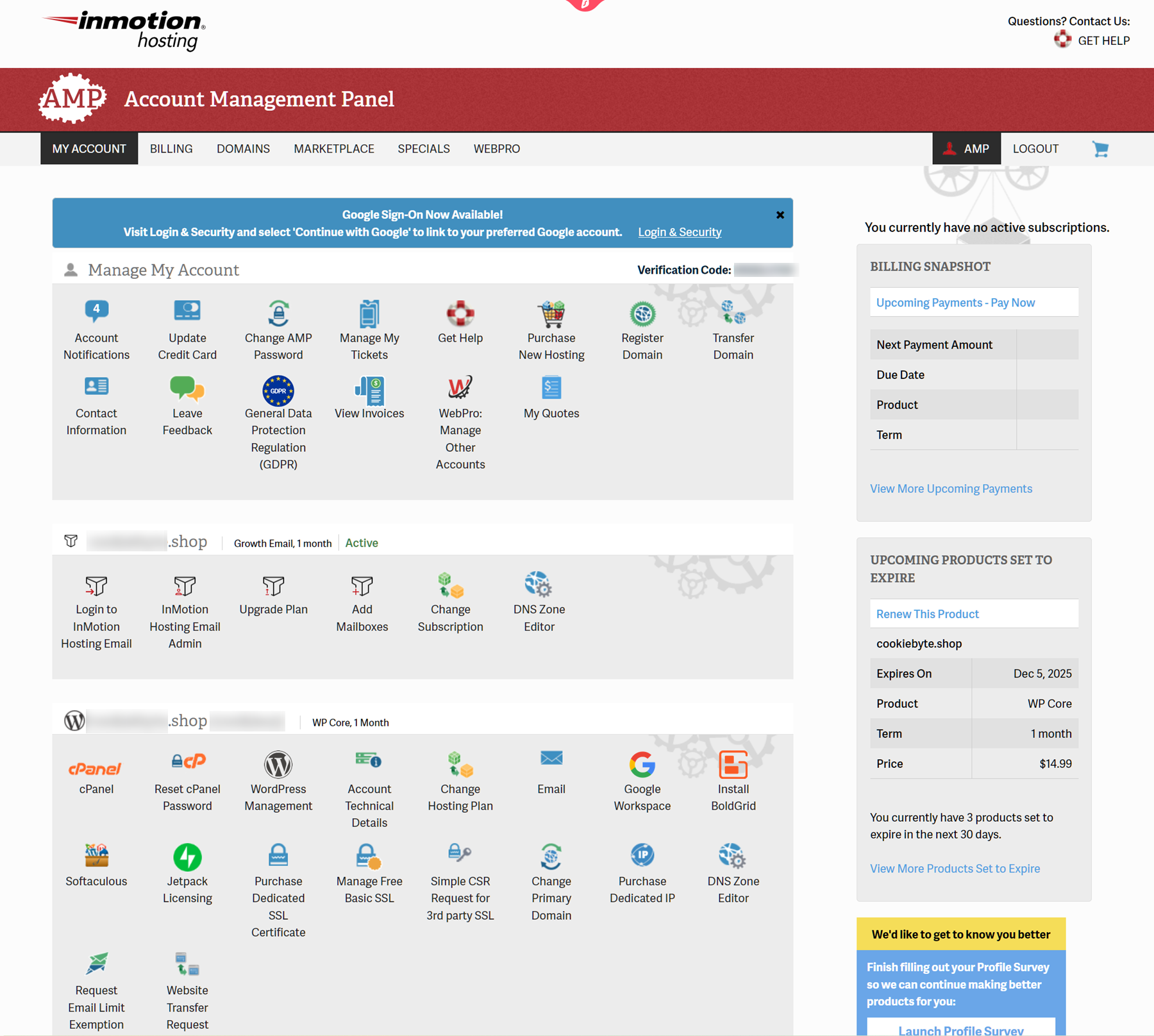 We found InMotion immensely frustrating to work with, largely due to its outdated and cluttered interface. While the dashboard does include everything you need, it also includes many items that most users won’t need very often and that are usually reserved for cPanel or proprietary server/domain management tools. This can be overwhelming for beginners, and it makes it difficult to find what you’re looking for.