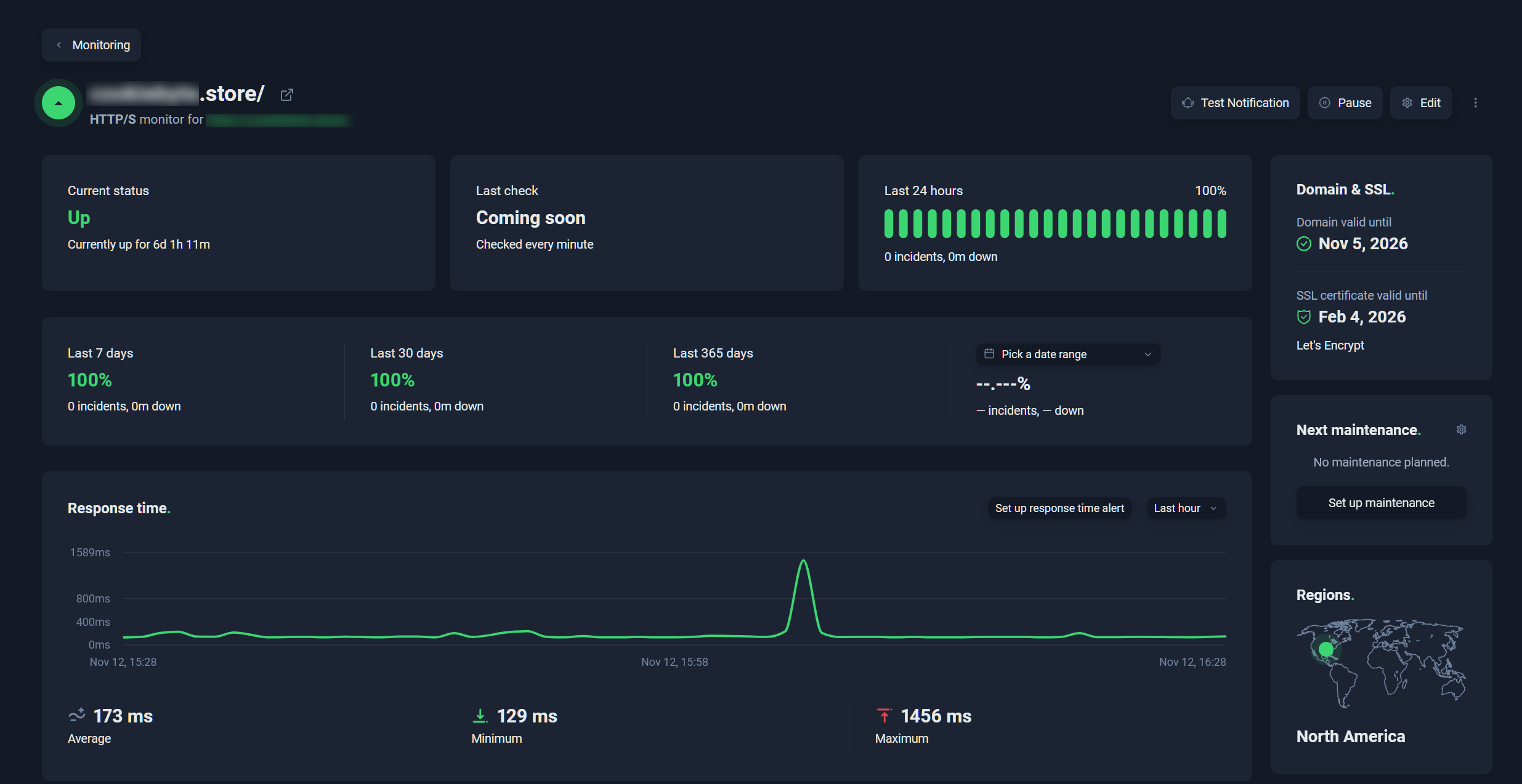 | Product | Uptime | Average response time | Minimum response time | Maximum response time |