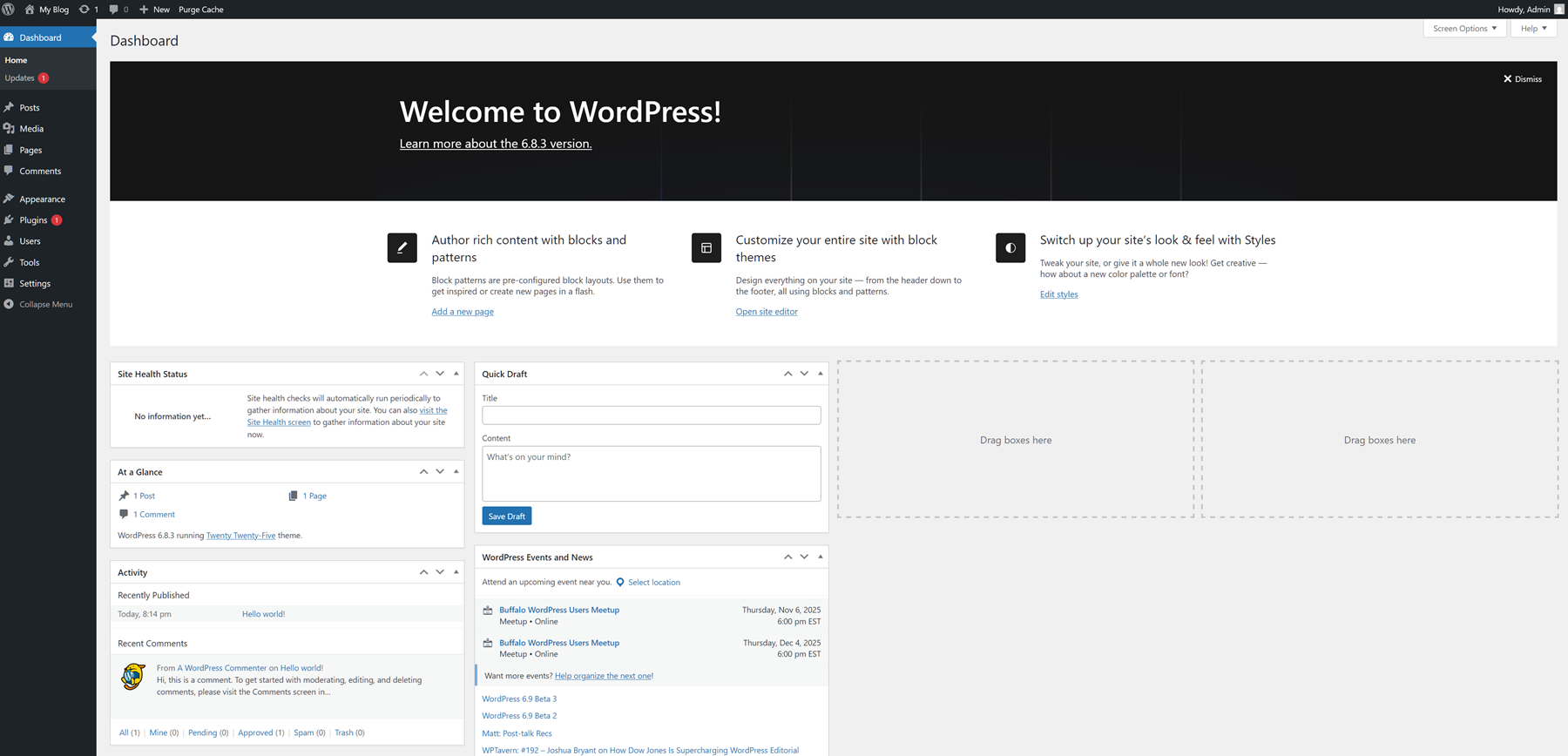 Once installed, the WordPress setup was extremely bare bones. There’s no site assistant to help you figure out where things are or understand what your next steps should be. This is fine if you’ve used WordPress before or you’re comfortable learning new tech on your own, but it could be frustrating for first-time website owners.