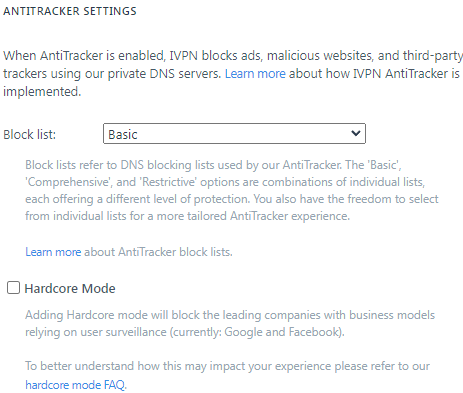 IVPN also includes a DNS-based ad blocker that also blocks some of the most common trackers you'll find on your browser.