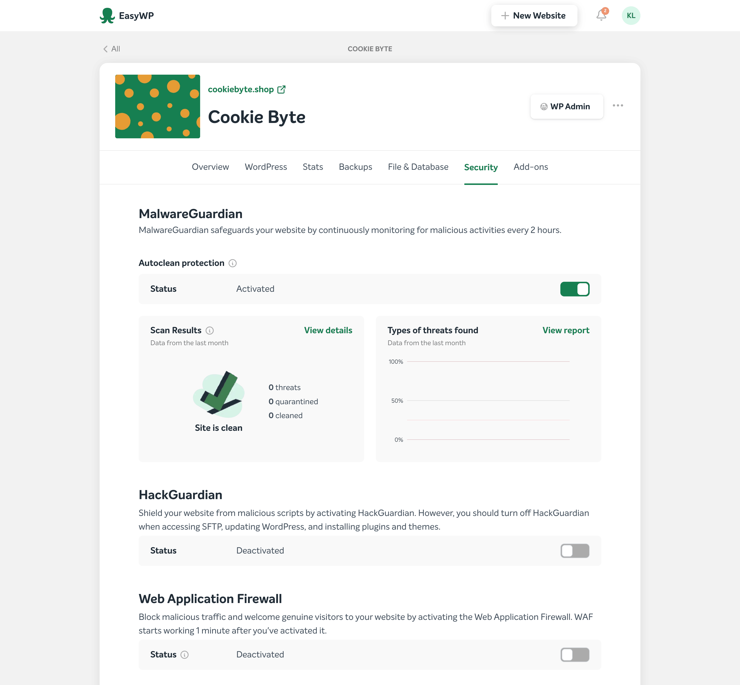 Namecheap's EasyWP stands out for its simplified control panel and impressive performance under pressure. All three pricing tiers include essentials like free SSL certificates, a CDN, and fundamental security features like DDoS protection and malware scanning. The platform also delivered flawless stress test results during our testing, handling traffic spikes without breaking a sweat.